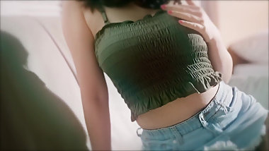 "cute chinese girlfriend pov blowjob watching tv, soft moaning, cum in mouth cumshot"