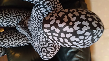 "I masturbated comfortably while being tightened in gray leopard print full-body tights!"