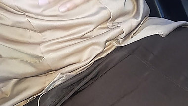 "Gold Satin Dress Masturbation And Cum Inside Dress"