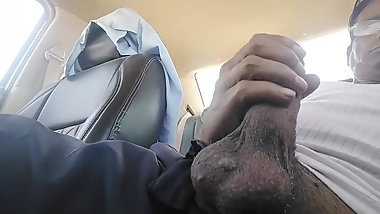 "Young asian taxi driver watches old white tourist play with cock in car gives help hand and get cum over him his clothes and car"