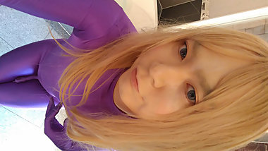 "A cross-dressing boy changed from a black swimsuit to purple full-body tights and masturbated comfortably!"