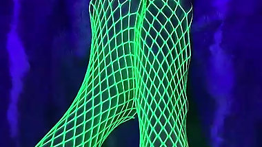 "Tiny Asian Feet with long toes in green neon fishnet"