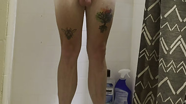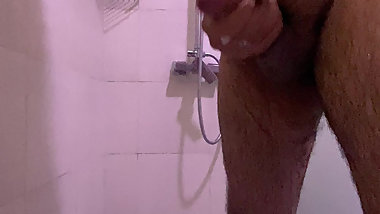 "My Chubby Buddy Jerks Off in the Shower His Dick So Hard and Cum So Thick"