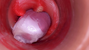 "The Camera Inside the Deep Pussy Records a Huge Ejaculation with a Stuck Condom!"