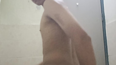 "Indian young smart boy bathing in bathroom, indian boy taking shower bathroom"